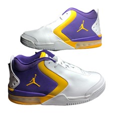 White and purple retro Jordans 12 or 23