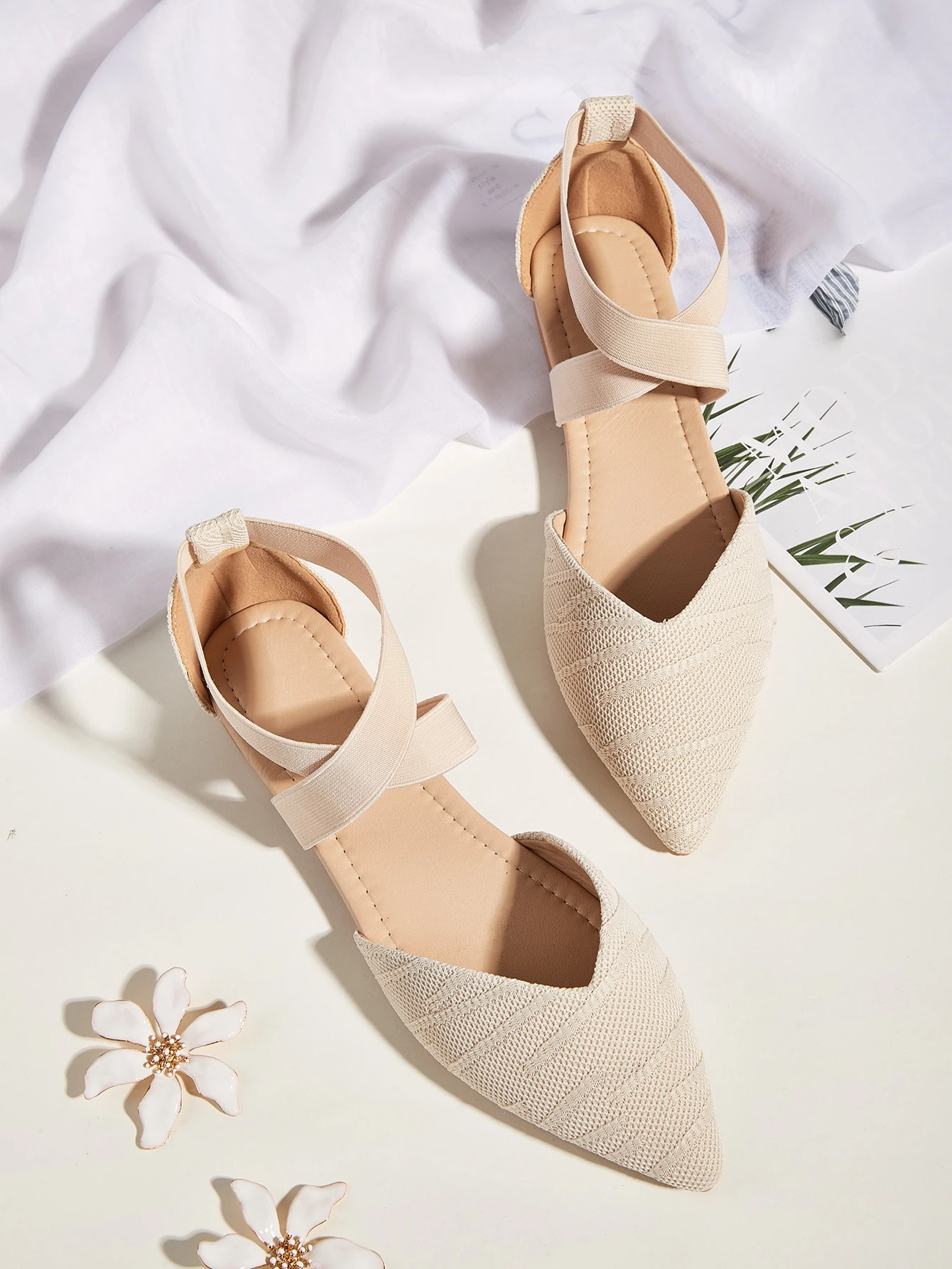 Point Toe Knit Ankle Strap Flats ankle strap flats
