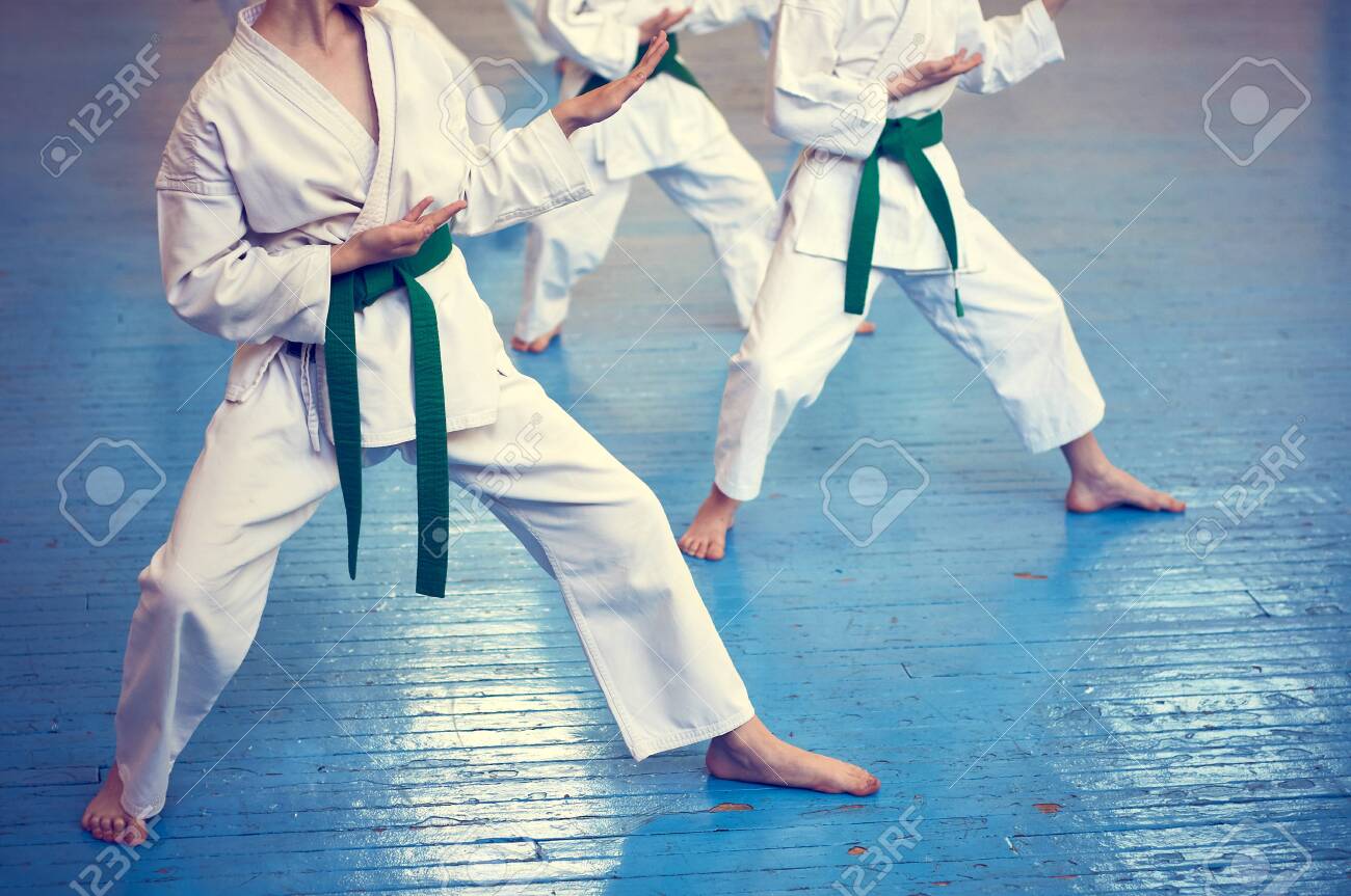 Kids Training On Karate-do. Banner With retro style for kids