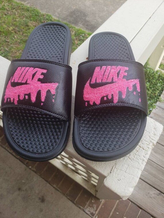 Nike custom glitter slides | Etsy nike slides glitter