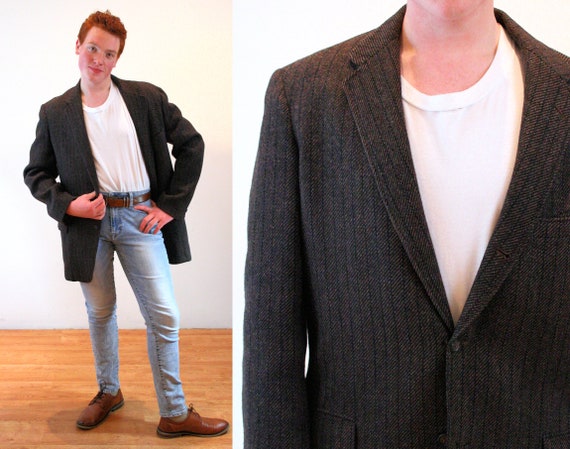 60s Harris Tweed Jacket 44L XL Vintage navy stripe harris tweed blazer