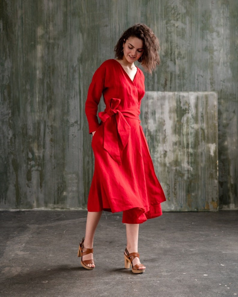 Baltic Linen Wrap Dress For Women bright red dress