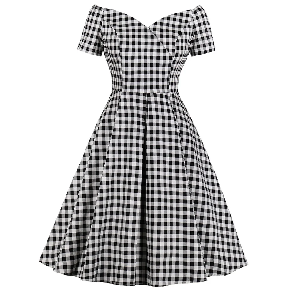 Joineles Sexy Summer V Neck Retro Dress checks frock