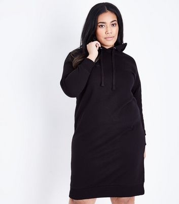 Curves Black Hooded Sweater Dress | New black hooded sweater dress