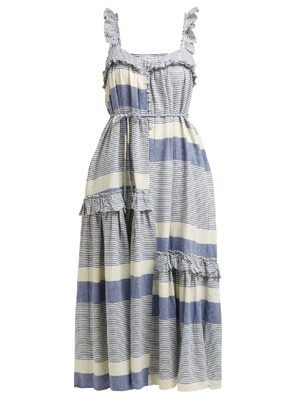 Rosalind Cotton Striped Ruffle Tiered stripe ruffle cotton maxi dress