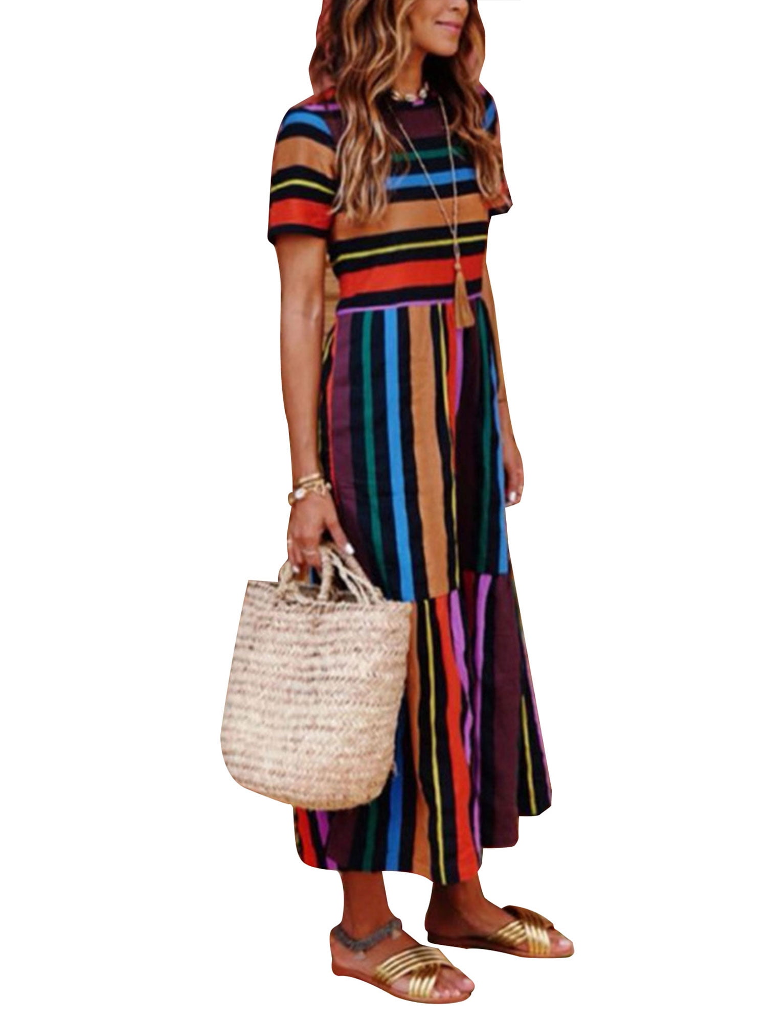 Boho Dress for Ladies Short Sleeve long sundress with short sleeves