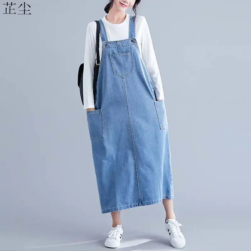 Plus Size Denim Dress Women Vintage plus size denim maxi dress