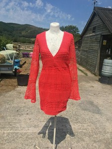 MISSGUIDED * RED PLUNGE BODYCON DRESS red lace ruffle detail plunge bodycon dress