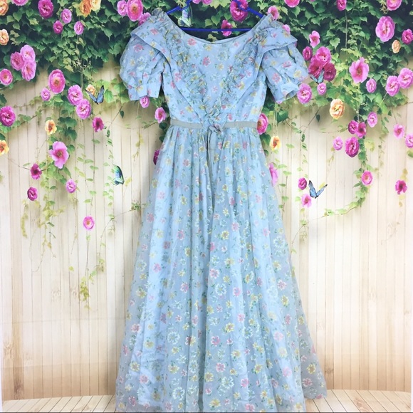 Vintage Dresses | Floral Blue 80s 80s bridesmaid dresses