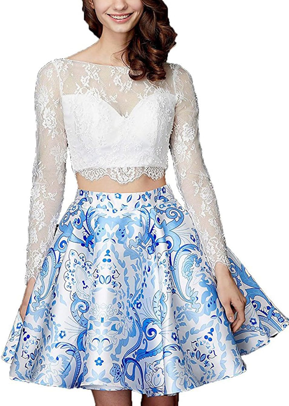 2 piece long sleeve homecoming dress