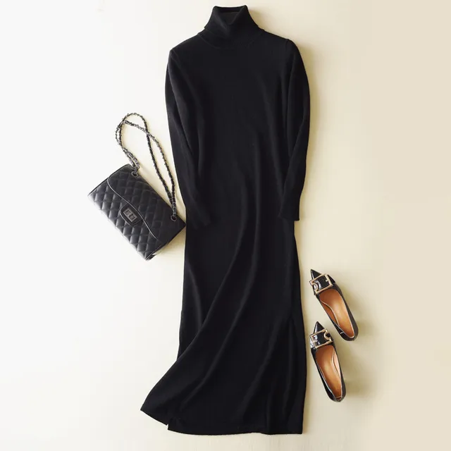 Women Maxi Dress Long Sleeve Turtleneck extra long sweater dress
