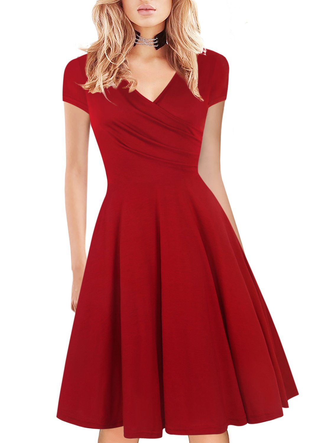 Nemidor Women's Short Sleeve V-Neck wrap swing dress