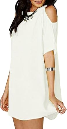 SYTX Womens Casual Solid Cold Shoulder loose chiffon dress white