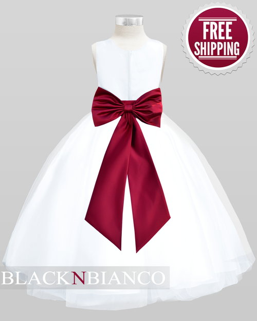 Sash Flower and Bow Flower Girl Dress dark red flower girl dresses
