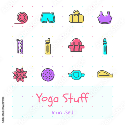 Yoga stuff line icon set of 12 modern yoga stuff