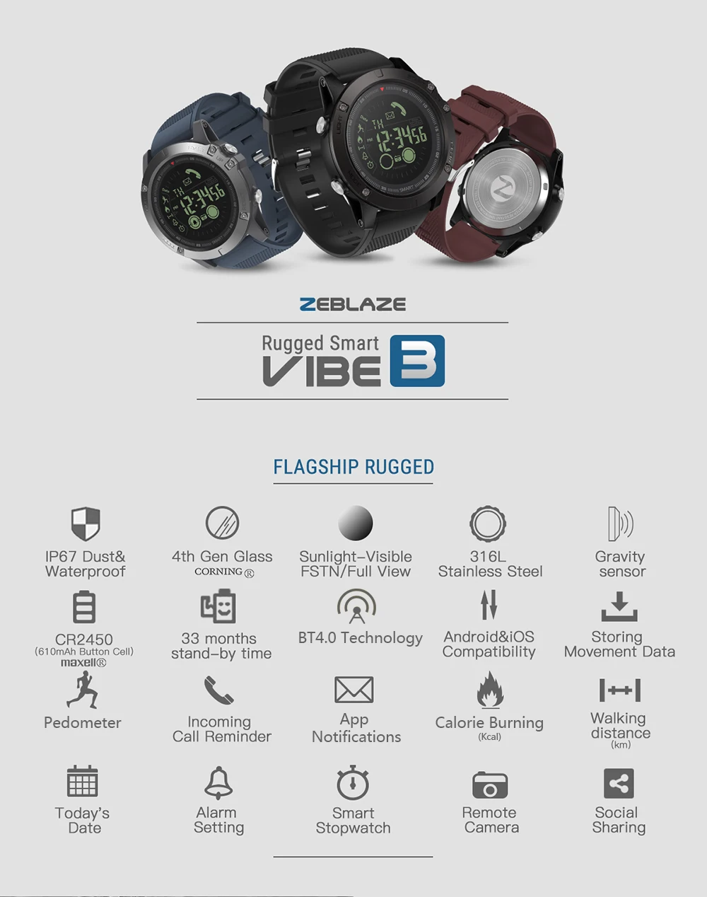 Zeblaze VIBE 3 PRO BT4.0 Sport Watch 1 zeblaze bt4 0