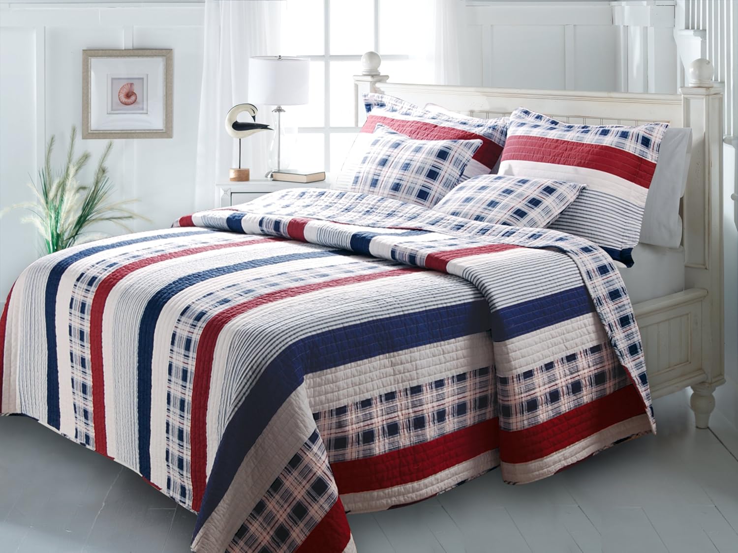 Auvoau Nautical Bedding Boys Sailboat nautical themed boy bedding