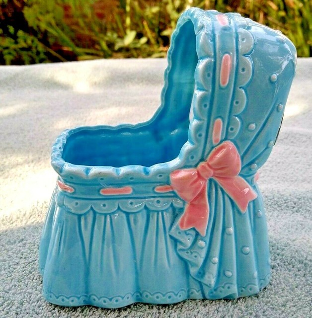 Vintage Lefton Baby Bassinet Blue Pink rock a bye bassinet