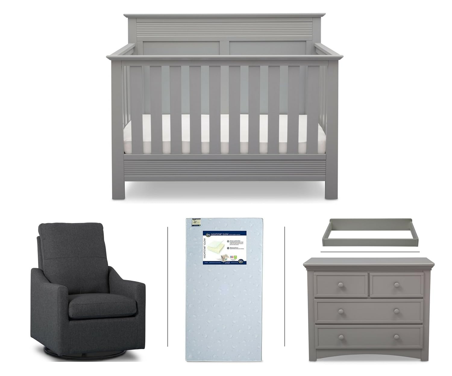 Serta Crib Mattress, Glider light grey nursery furniture sets