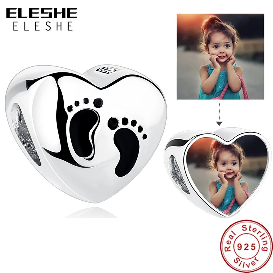 ELESHE Personalized 925 Sterling Silver custom baby footprint charm