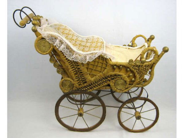 VINTAGE WICKER DOLL STROLLER CARRIAGE antique doll strollers