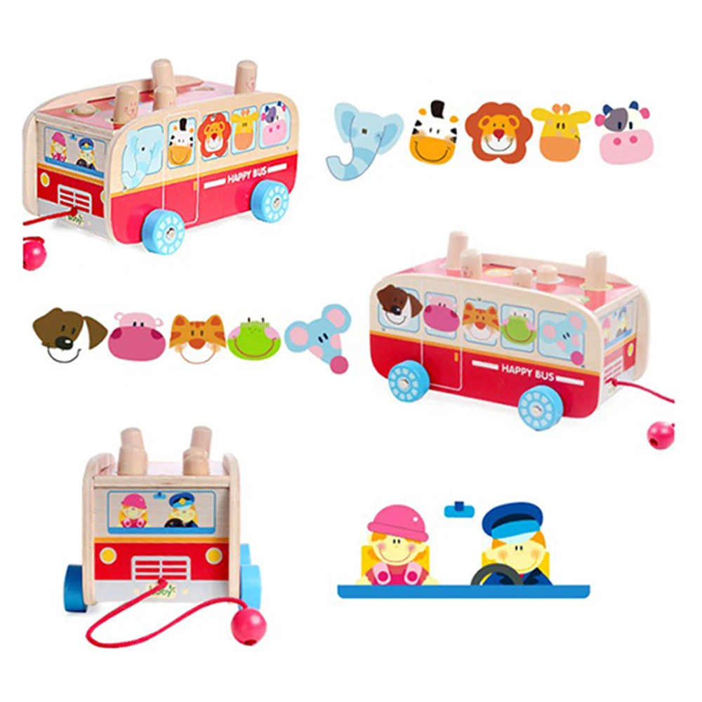 Wooden Pounding Whac a Mole Game Pull learning bus toy