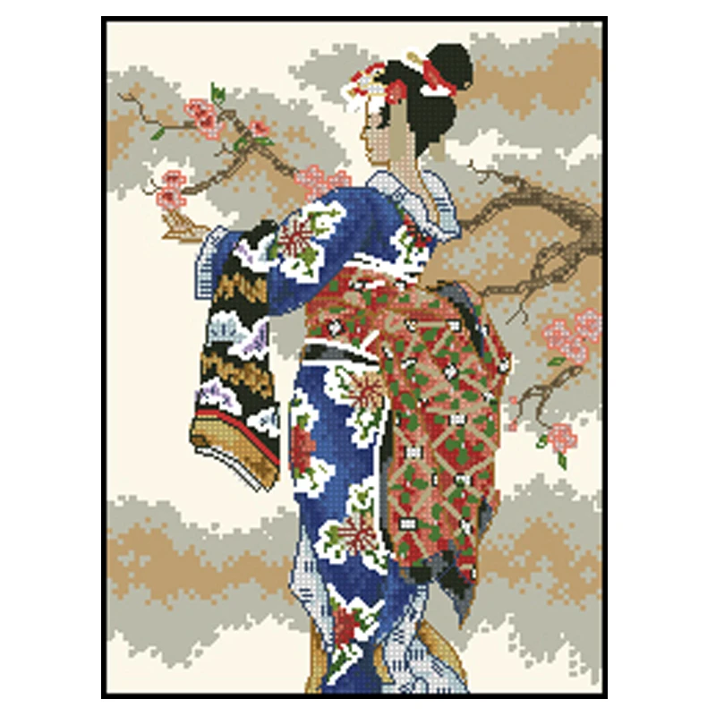 oriental geisha girl japanese chinese geisha girl cross stitch kit