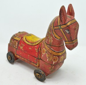 vintage wooden horse on wheels