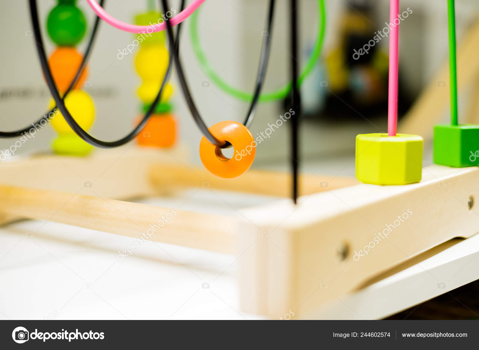 Wire bead maze standing on a table. Kid wire bead maze