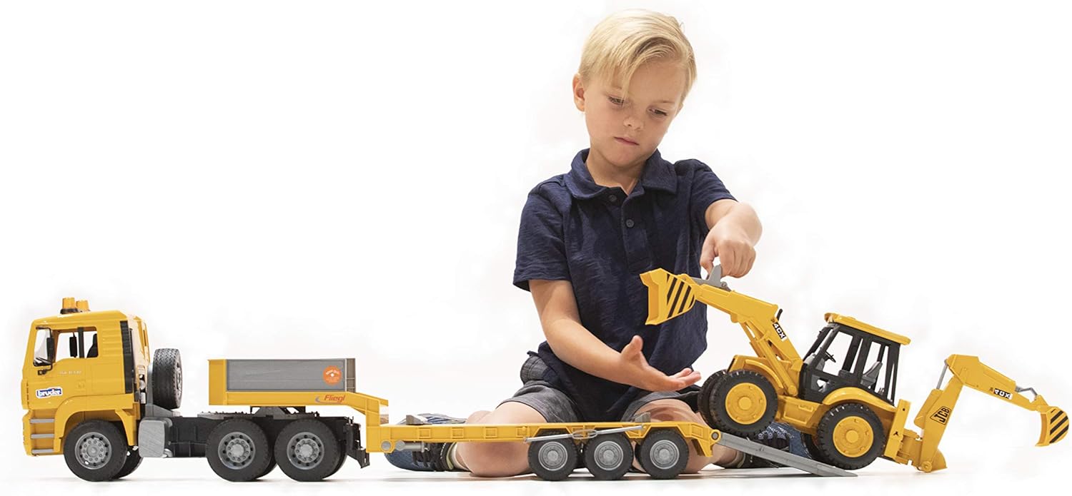 Bruder MAN TGA Low Load Truck with JCB bruder man tga low loader truck