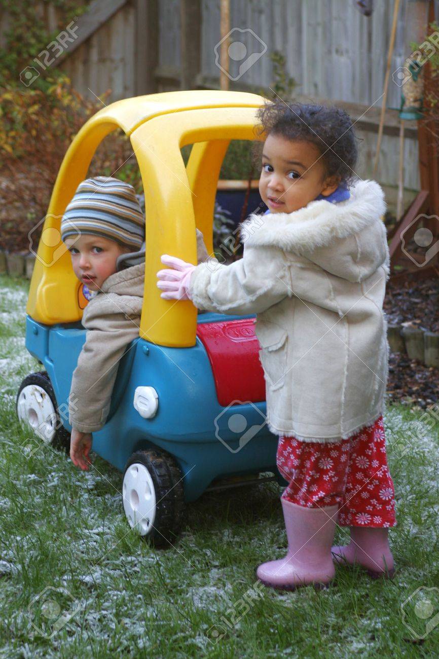 Small Boy In A Giant Toy Car giant toy car