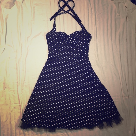 Sweetheart Halter Cotton Soft Tulle 50s style polka dot dress