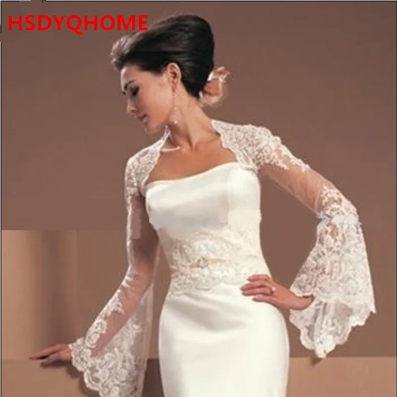 High Quality White Long Sleeve Lace white lace jacket for wedding dress