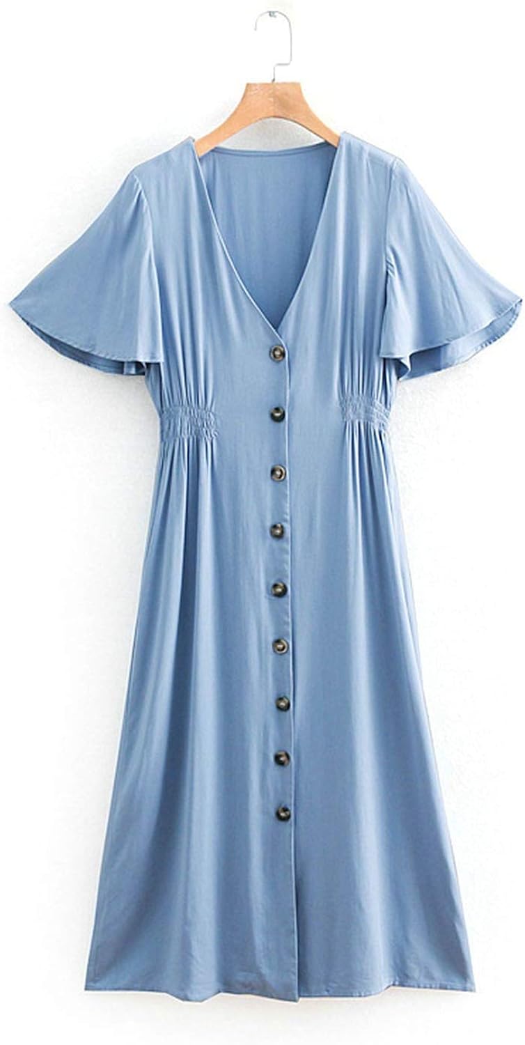 lvshanliu 2019 Women Summer Blue Dress ladies gown 2019