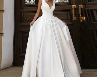 Satin wedding dress beach