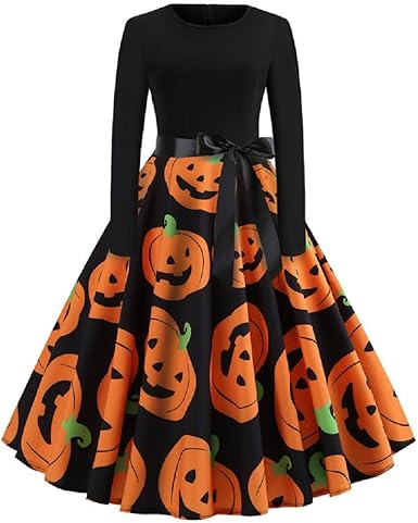 Halloween Dresses Womens Long Sleeve pumpkin swing dress