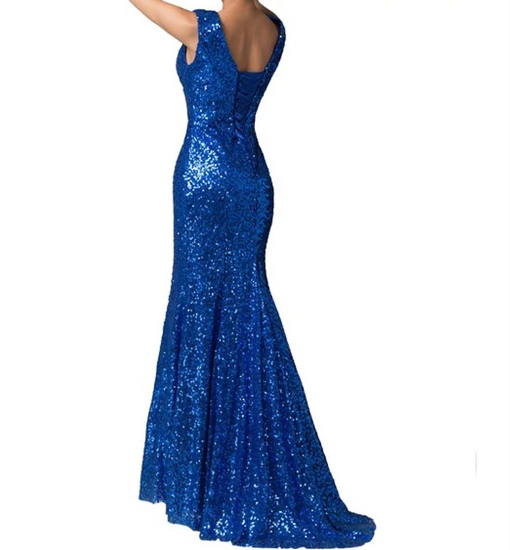 LanierWedding Gold Sequins Mermaid plus size royal blue sequin dress