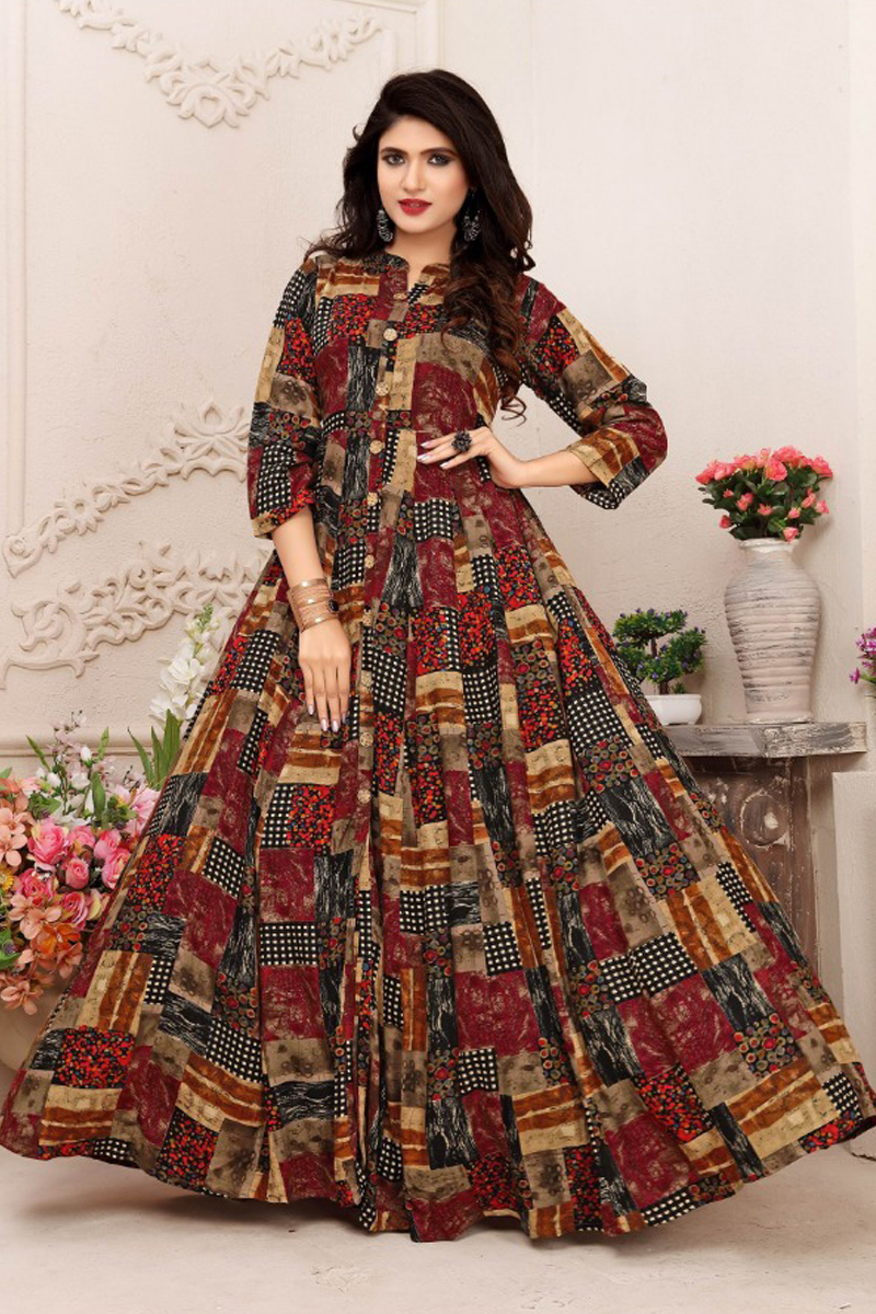 5692 - Bulk Rayon Printed Gown Style floor length anarkali kurti