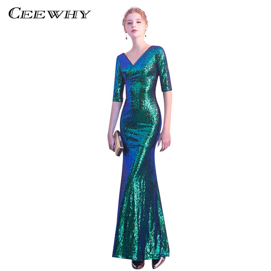 CEEWHY Half Sleeve Luxury Mermaid Long 1920 style prom dresses