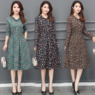 Women Floral Retro Dress Long Sleeve midi and maxi dresses with sleeves