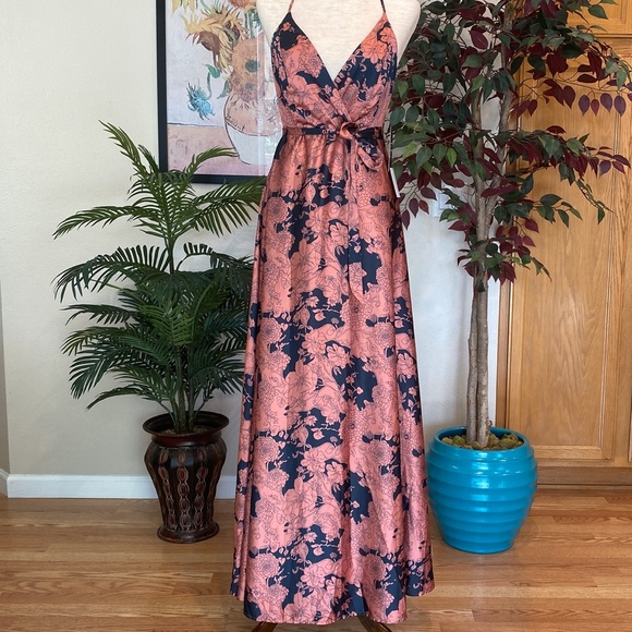 tea gardens rusty rose floral print satin maxi dress