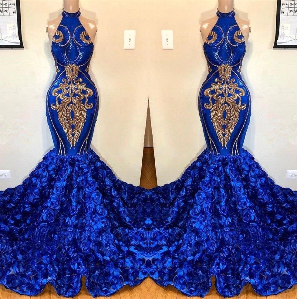 Black Girl Prom Dress 2019 Beading royal blue dresses 2019