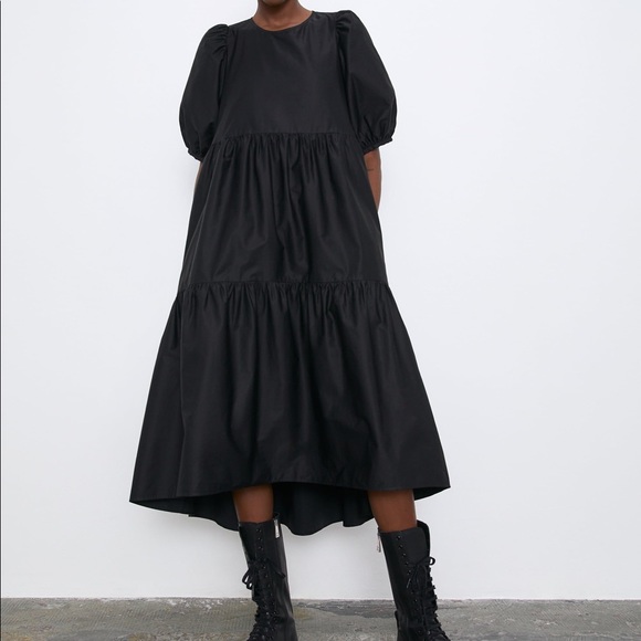 zara black poplin dress