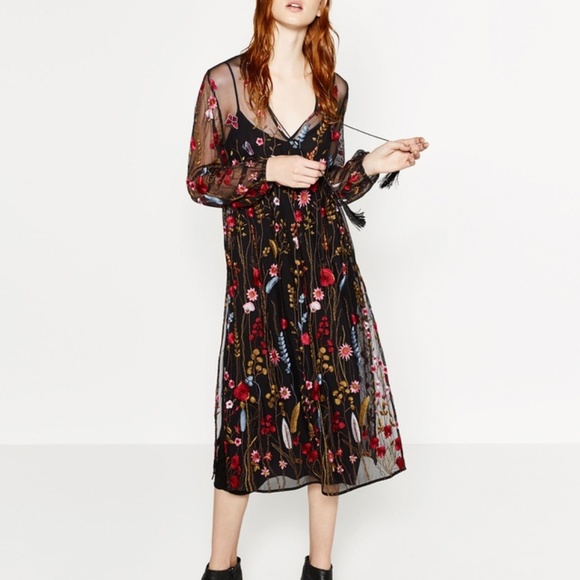 Zara Dresses | Zara Embroidered Floral zara net dress