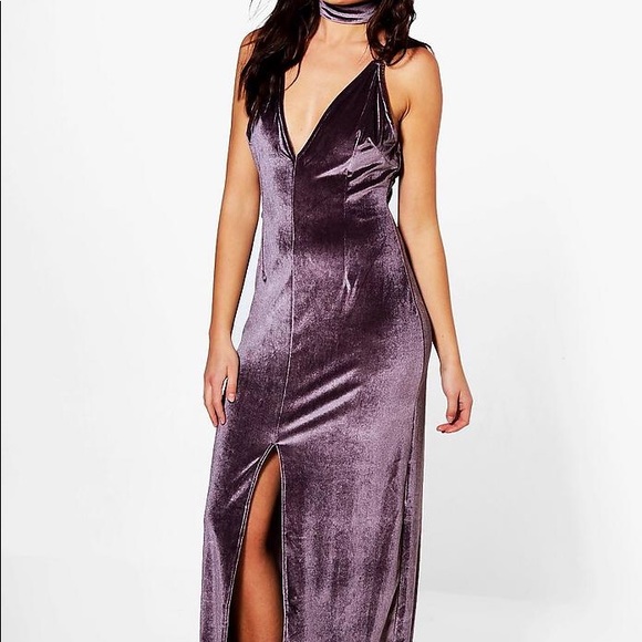 Lavender Velvet Choker Split Front Maxi lavender velvet dress