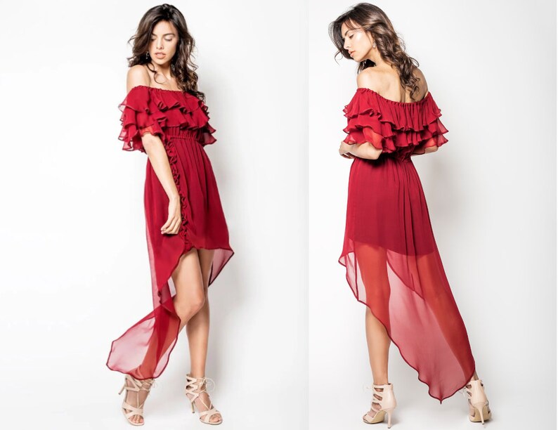 Petite Bardot Frill Midi Dress MIA red petite bardot