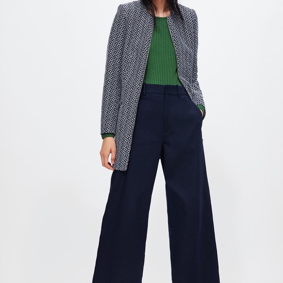 ZARA BLUE WHITE TEXTURED FROCK COAT zara frock coat with zips
