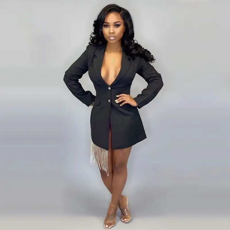Black Blazer Dress Women 2020 Autumn blazer dress with tassels