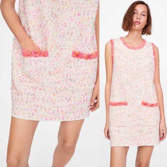 Zara pink tweed dress new with tags pink zara tweed dress
