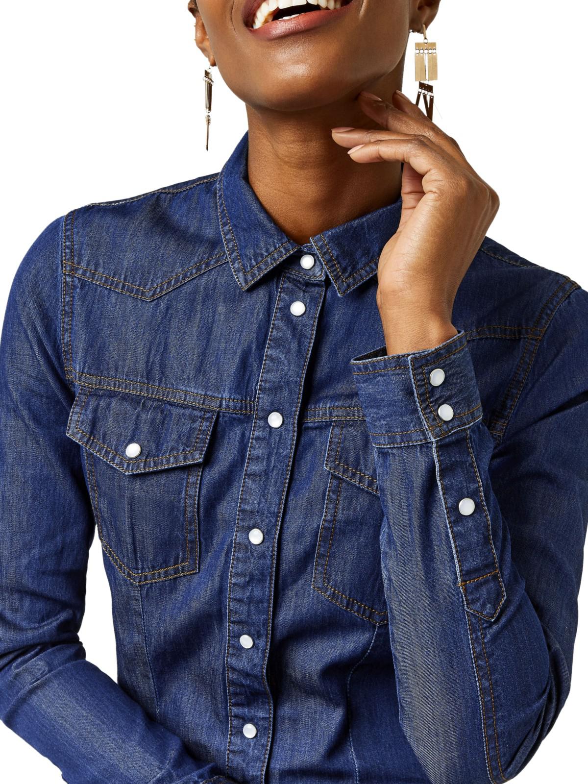 Warehouse Denim Western Shirt Dress in warehouse western denim shirt dress